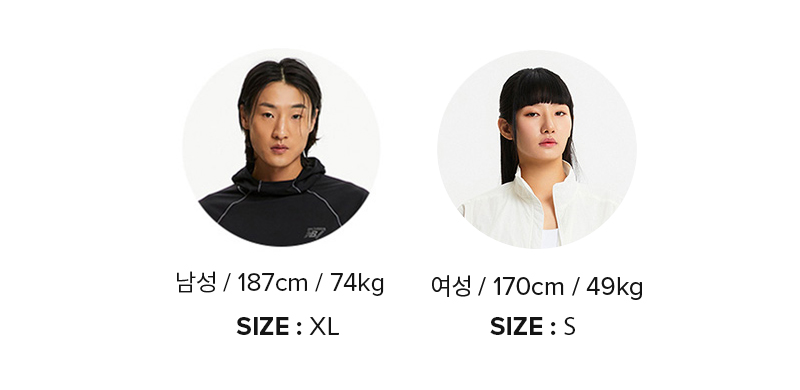 ※ 제품의 실측 사이즈가 아닌 각 사이즈에 맞는 신체 사이즈로 실 제품과 차이가 있을 수 있으므로 참고하시기 바랍니다.