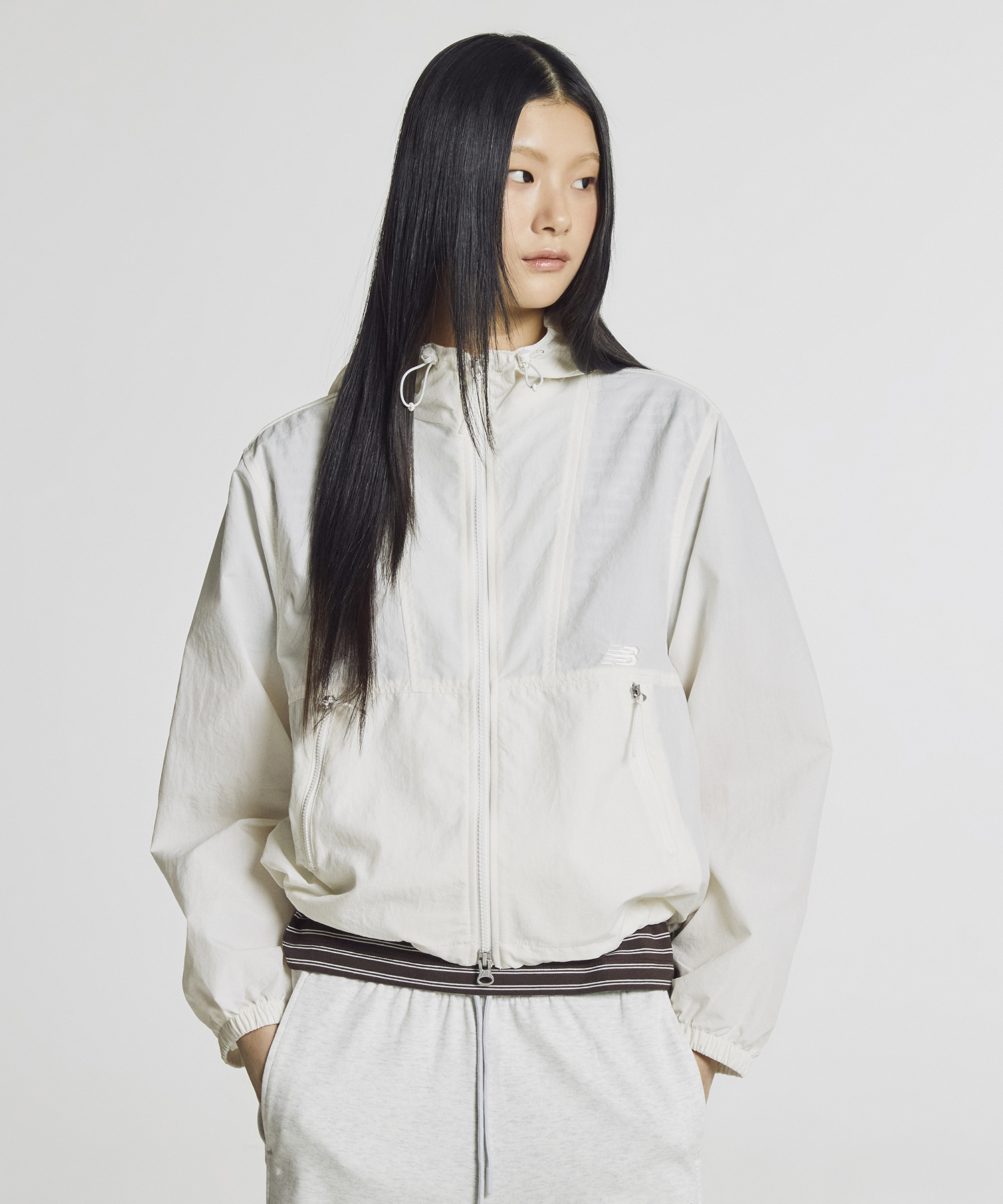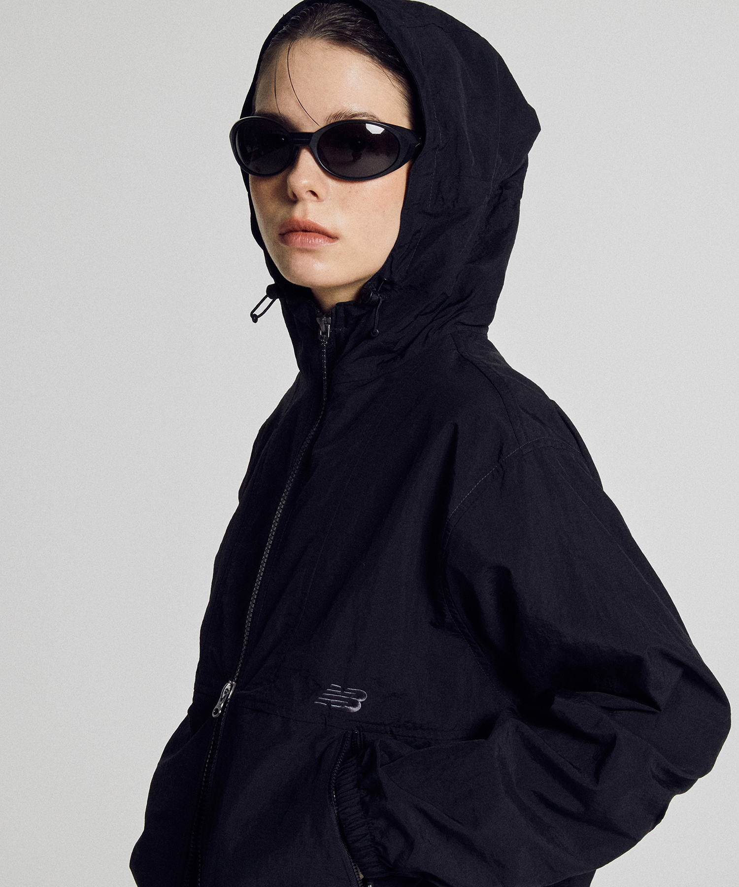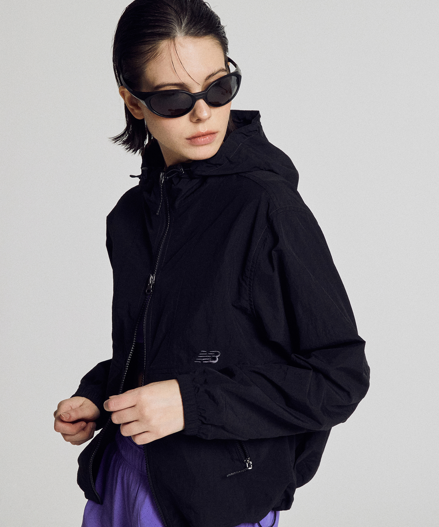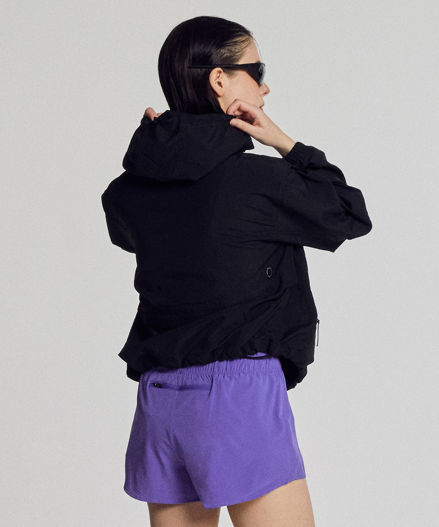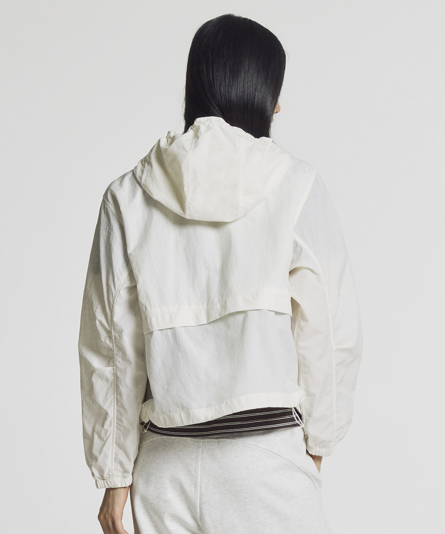 후드형의 우븐 자켓으로 운동 시 가벼운 방풍 효과 있습니다