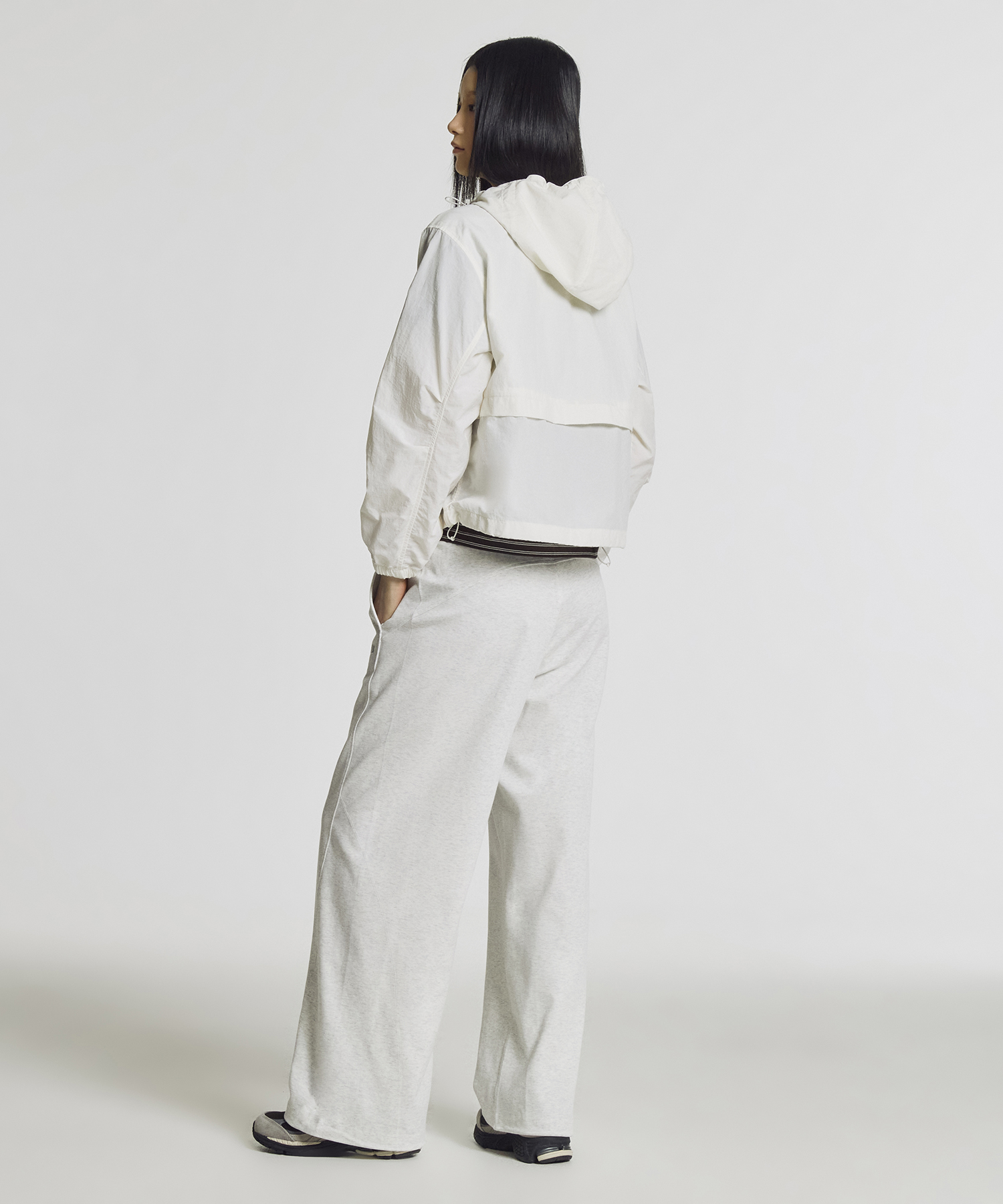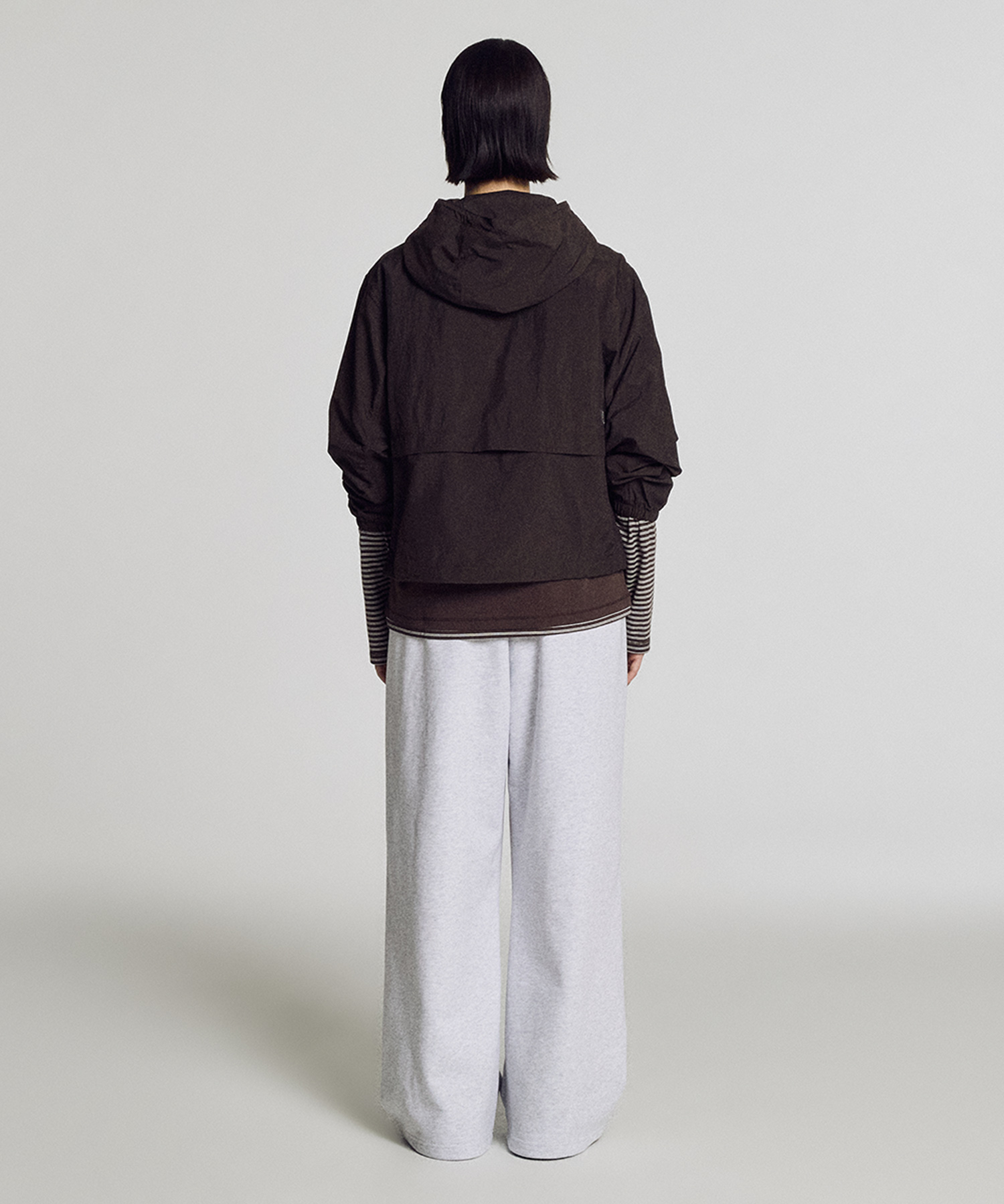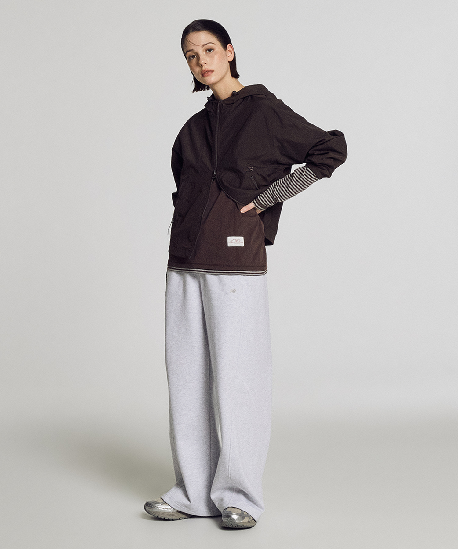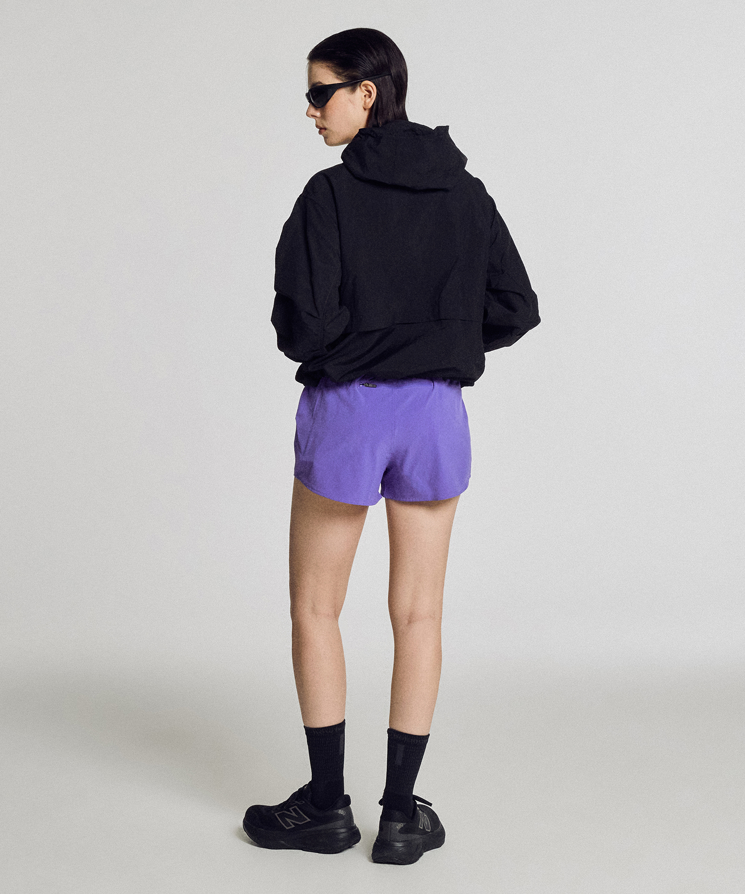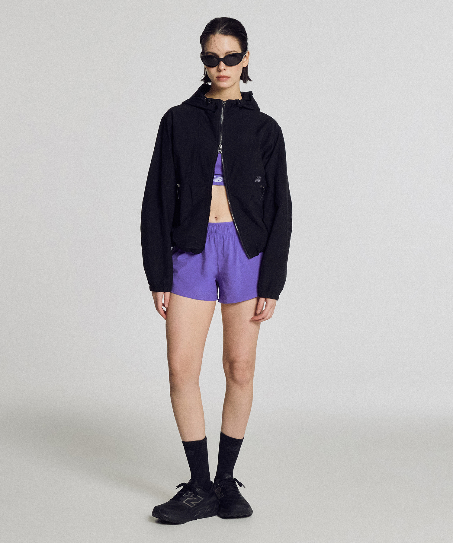 후드형의 우븐 자켓으로 운동 시 가벼운 방풍 효과 있습니다