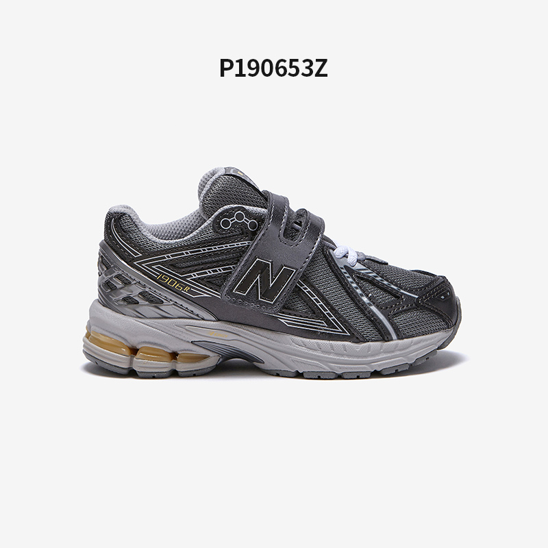 키즈 만의 디자인적 특징은 고객의 특성에 맞게 신끈이 아닌 벨크로 + 번지 스트랩의 조합으로 신고 벗기 편하면서도 완성도 있게 디자인 되었습니다.