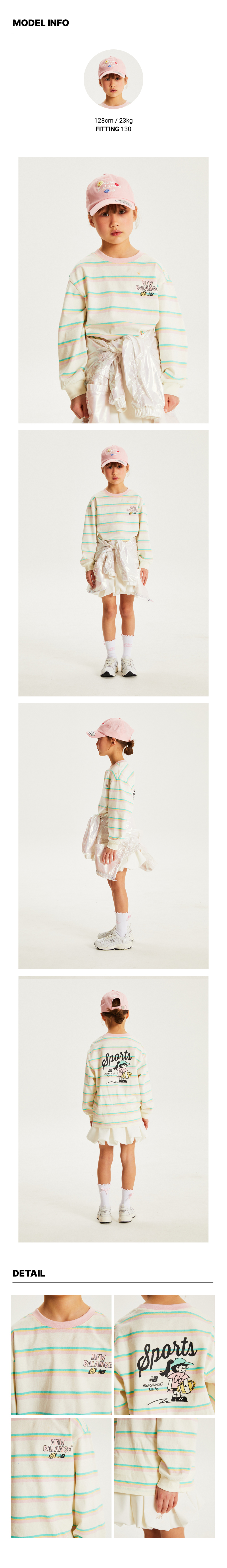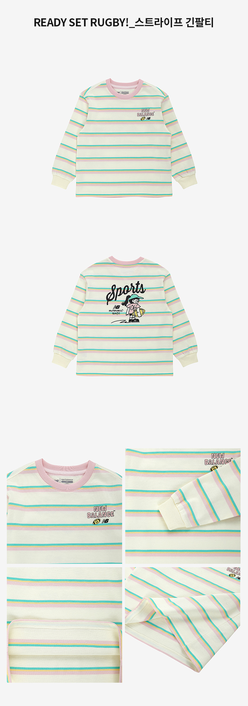 사탕 같은 멀티 스트라이프 패턴과 등판의 럭비 일러스트가 포인트인 긴팔 티셔츠입니다.