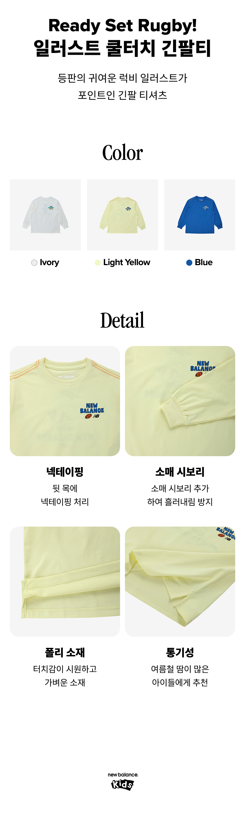 얇은 중량의 폴리 소재를 사용하여 터치감이 시원하고 가벼우며 통기성이 좋아 여름철 땀이 많은 아이들, 에어컨 바람이 피하고싶은 아이들에게 추천합니다.
