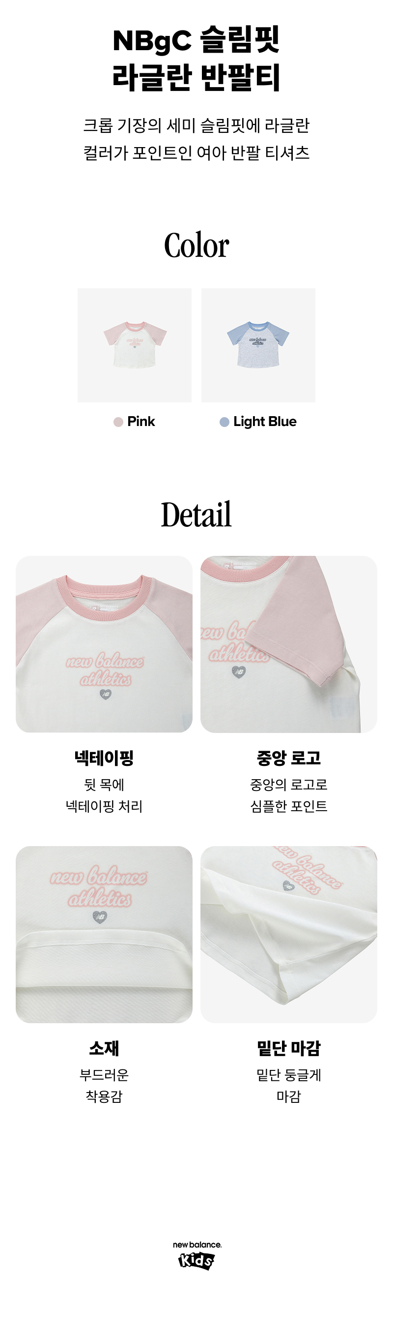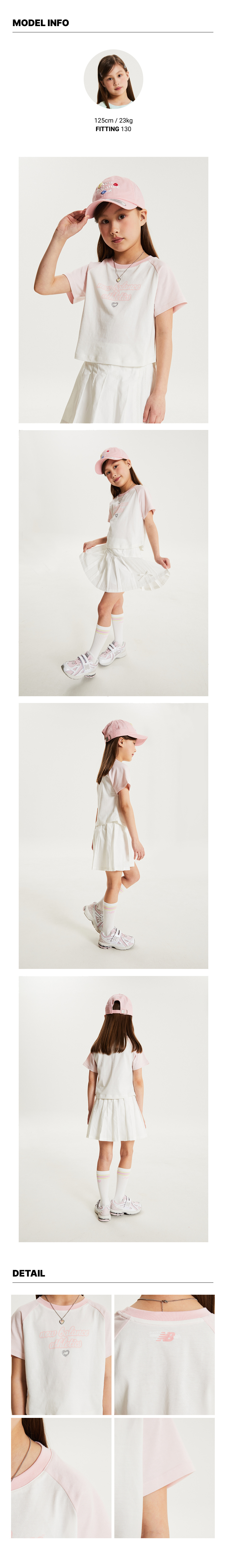 크롭 기장의 세미 슬림핏에 라글란 컬러가 포인트인 여아 반팔 티셔츠입니다.