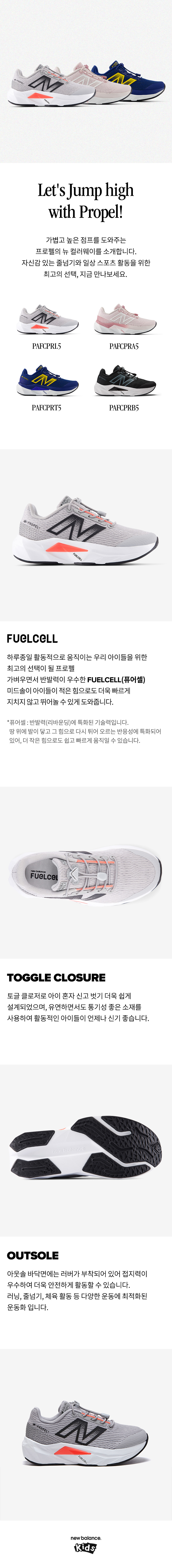 아이들이 적은 힘으로도 더욱 빠르고 통통 뛸 수 있도록 가벼우면서 반발력이 우수한 퓨어셀(Fuelcell) 미드솔이 모든 움직임을 서포트합니다.