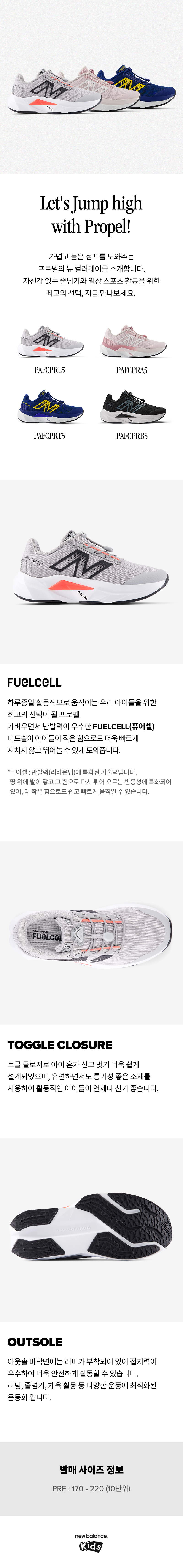 아이들이 적은 힘으로도 더욱 빠르고 통통 뛸 수 있도록 가벼우면서 반발력이 우수한 퓨어셀(Fuelcell) 미드솔이 모든 움직임을 서포트합니다.