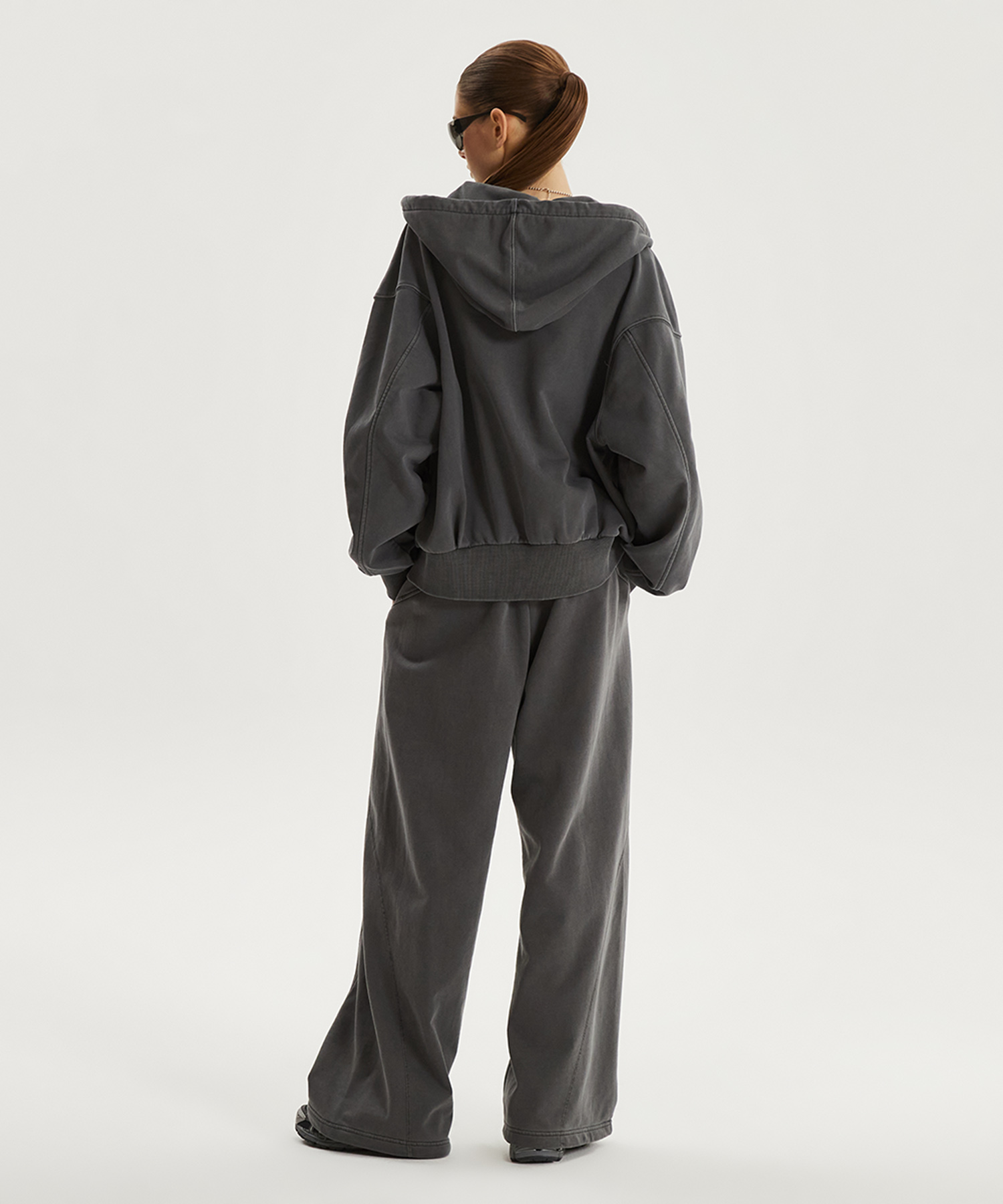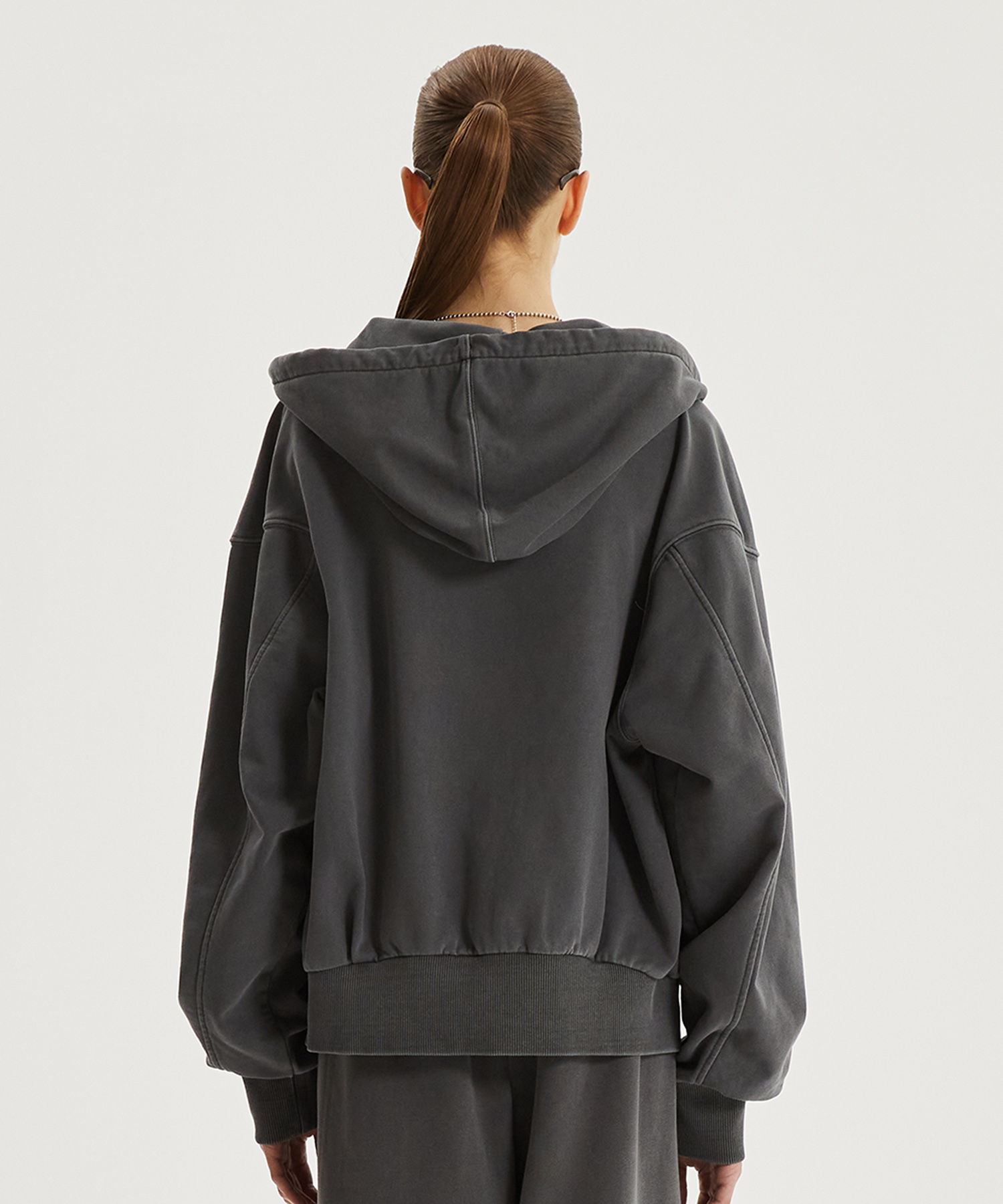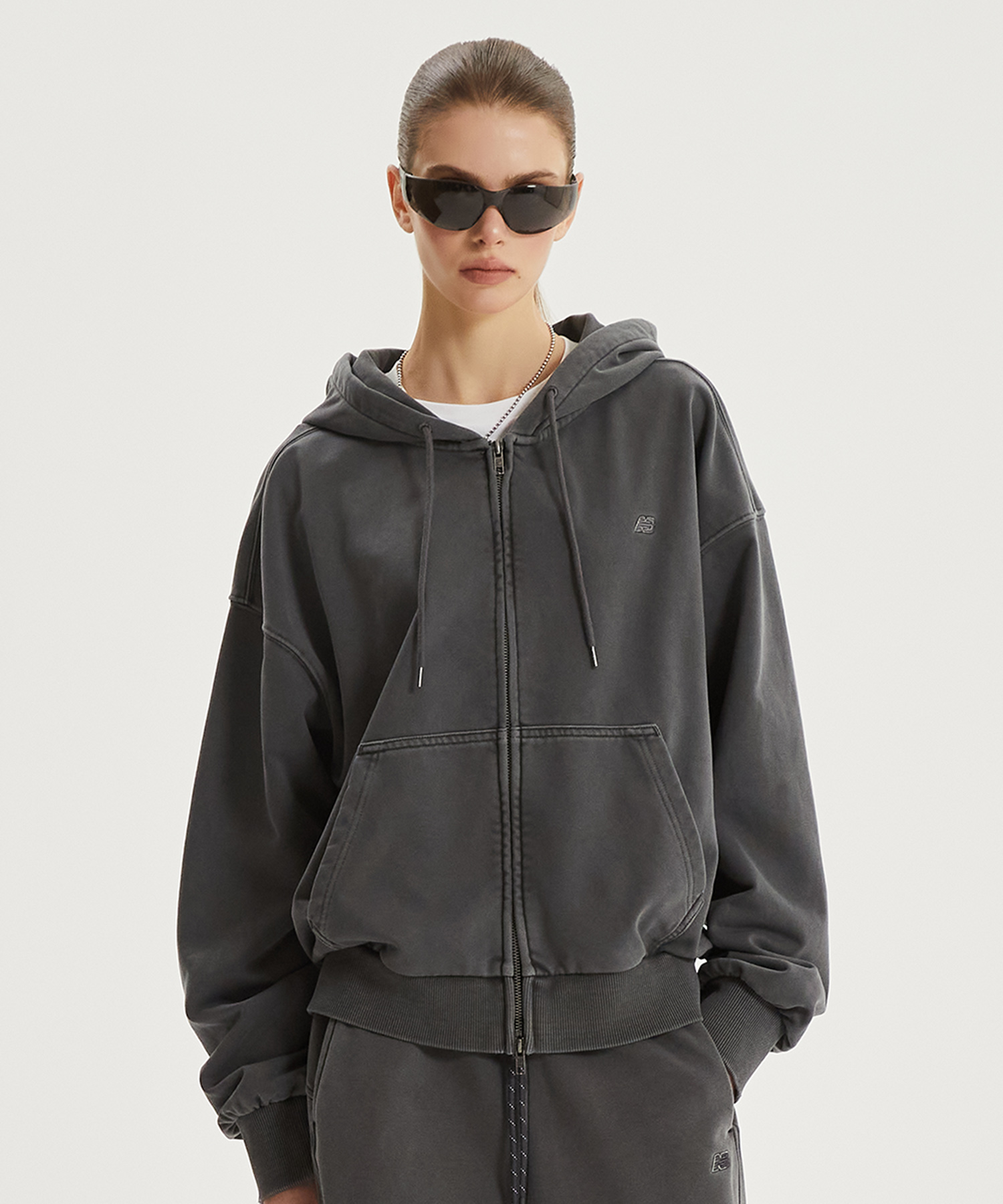 피그먼트 가먼트 다잉 기법으로 내추럴한 무드의 후드집업입니다