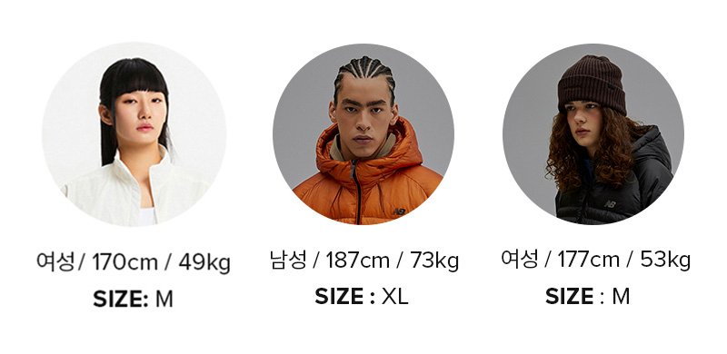 ※ 제품의 실측 사이즈가 아닌 각 사이즈에 맞는 신체 사이즈로 실 제품과 차이가 있을 수 있으므로 참고하시기 바랍니다.