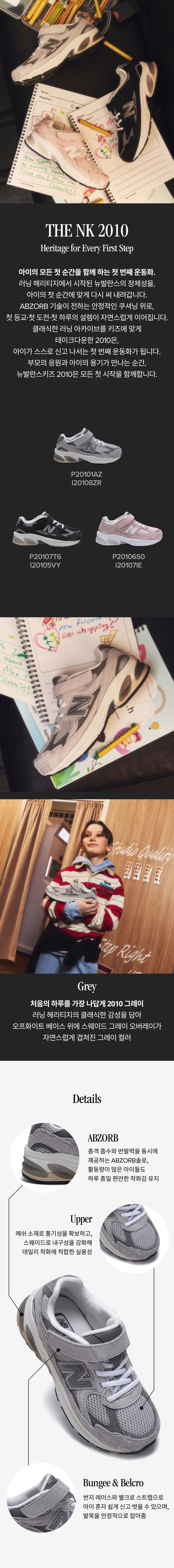 클래식한 헤리티지를 현대적인 감각으로 풀어낸 2010은 키즈로 테이크다운되면서 번지+벨크로 버전으로, 아이들이 더욱 신고 벗기 편하도록 디자인되었습니다.