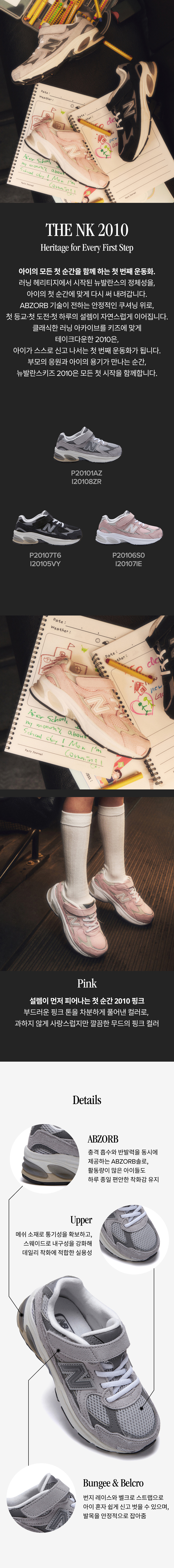클래식한 헤리티지를 현대적인 감각으로 풀어낸 2010은 키즈로 테이크다운되면서 번지+벨크로 버전으로, 아이들이 더욱 신고 벗기 편하도록 디자인되었습니다.