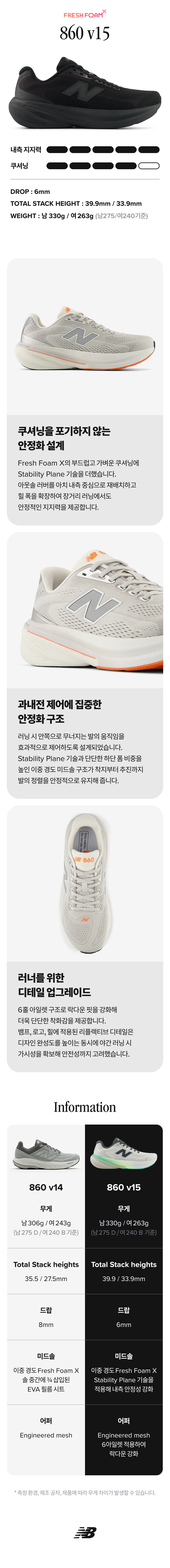 강화된 쿠셔닝과 지지력의 프리미엄 안정화 860 V15입니다