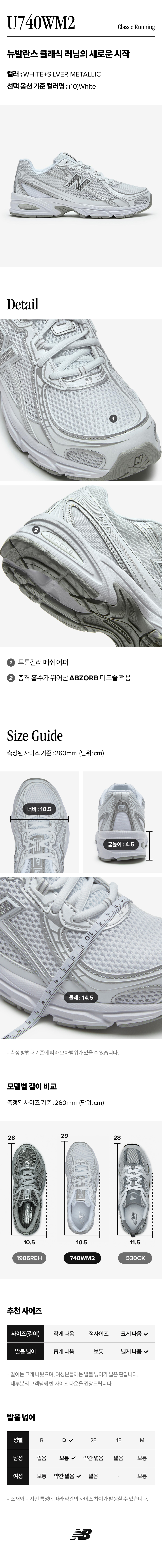 세련된 메탈릭 실버 컬러와 유선형 디테일이 돋보이는 뉴발란스 U740SG2는