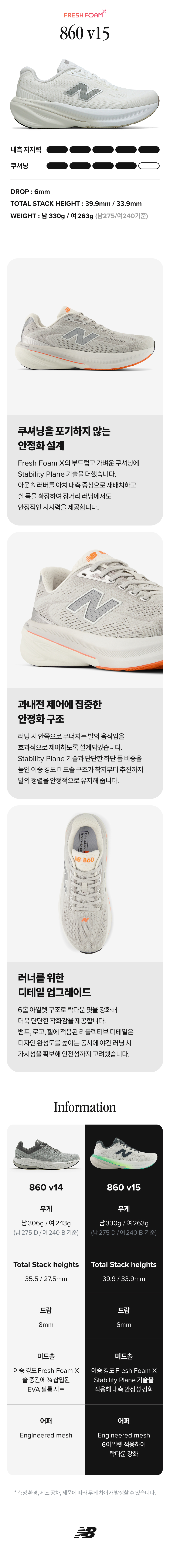 강화된 쿠셔닝과 지지력의 프리미엄 안정화 860 V15입니다