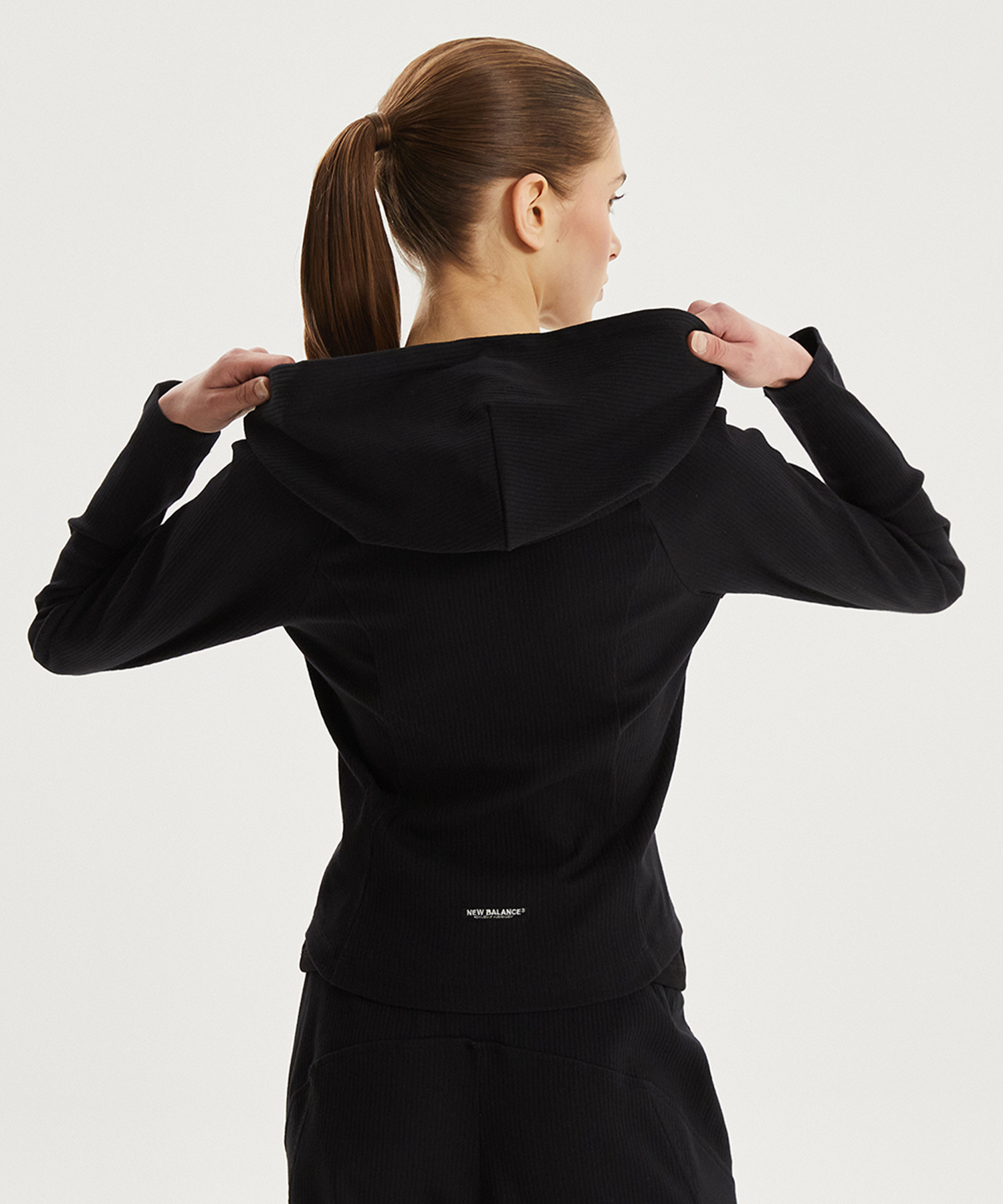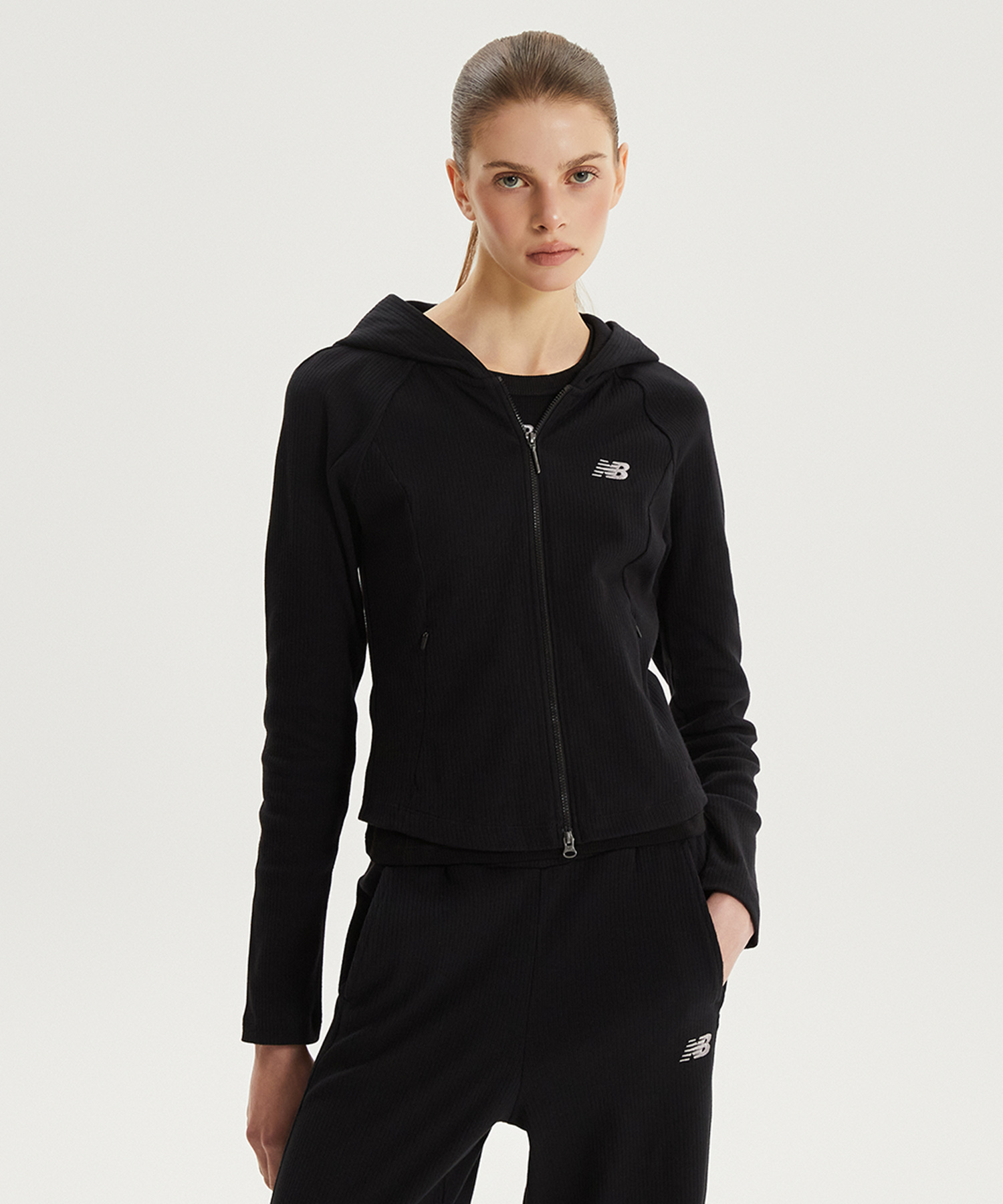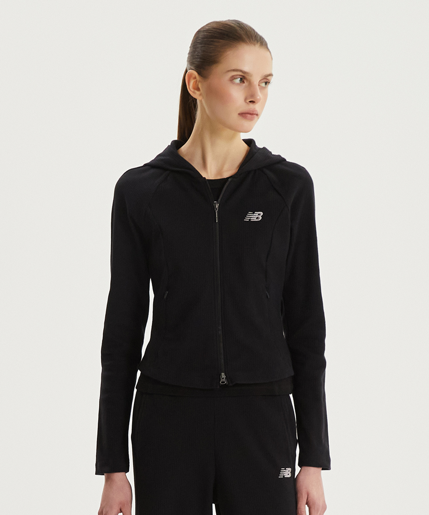 우먼스 잔골지 소재의 에센셜 후드 집업입니다
