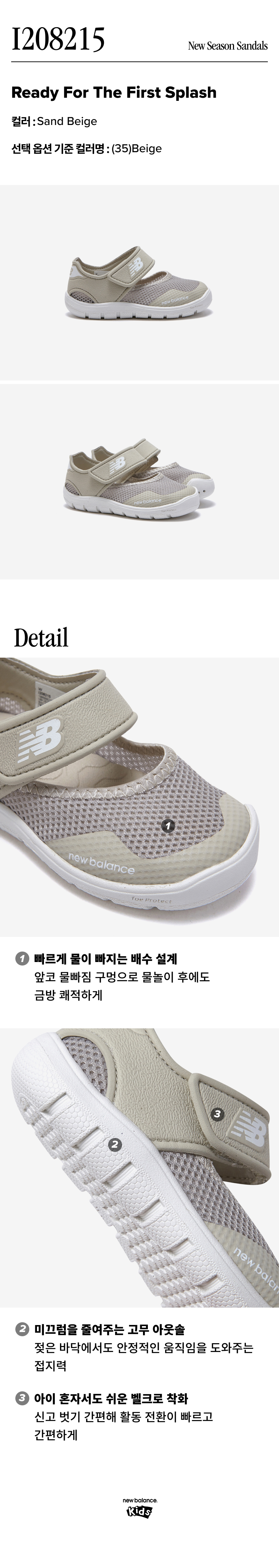 앞코 물빠짐 구멍이 있어 물놀이에 적합하며, 고무 아웃솔로 미끄럼을 방지합니다.