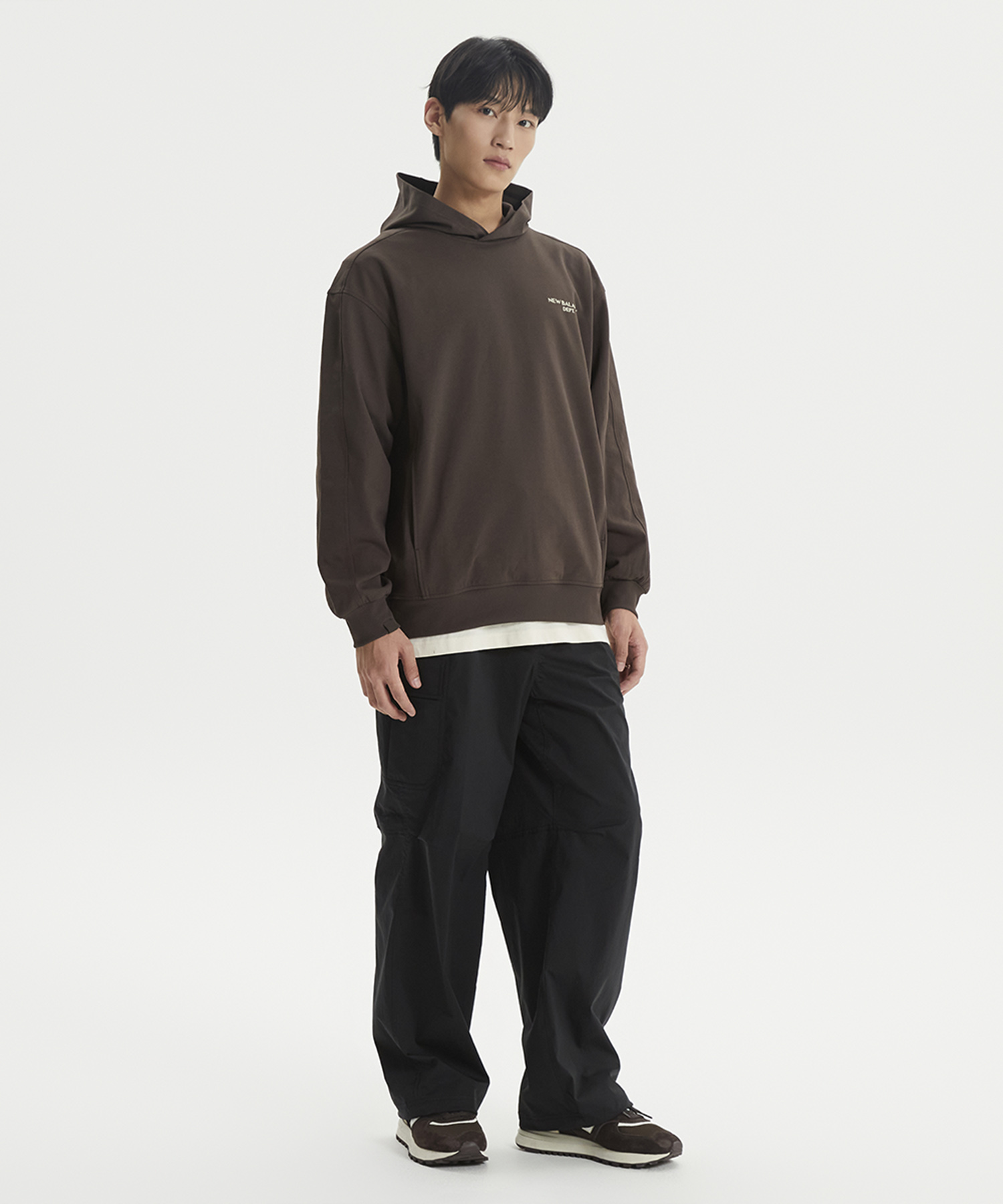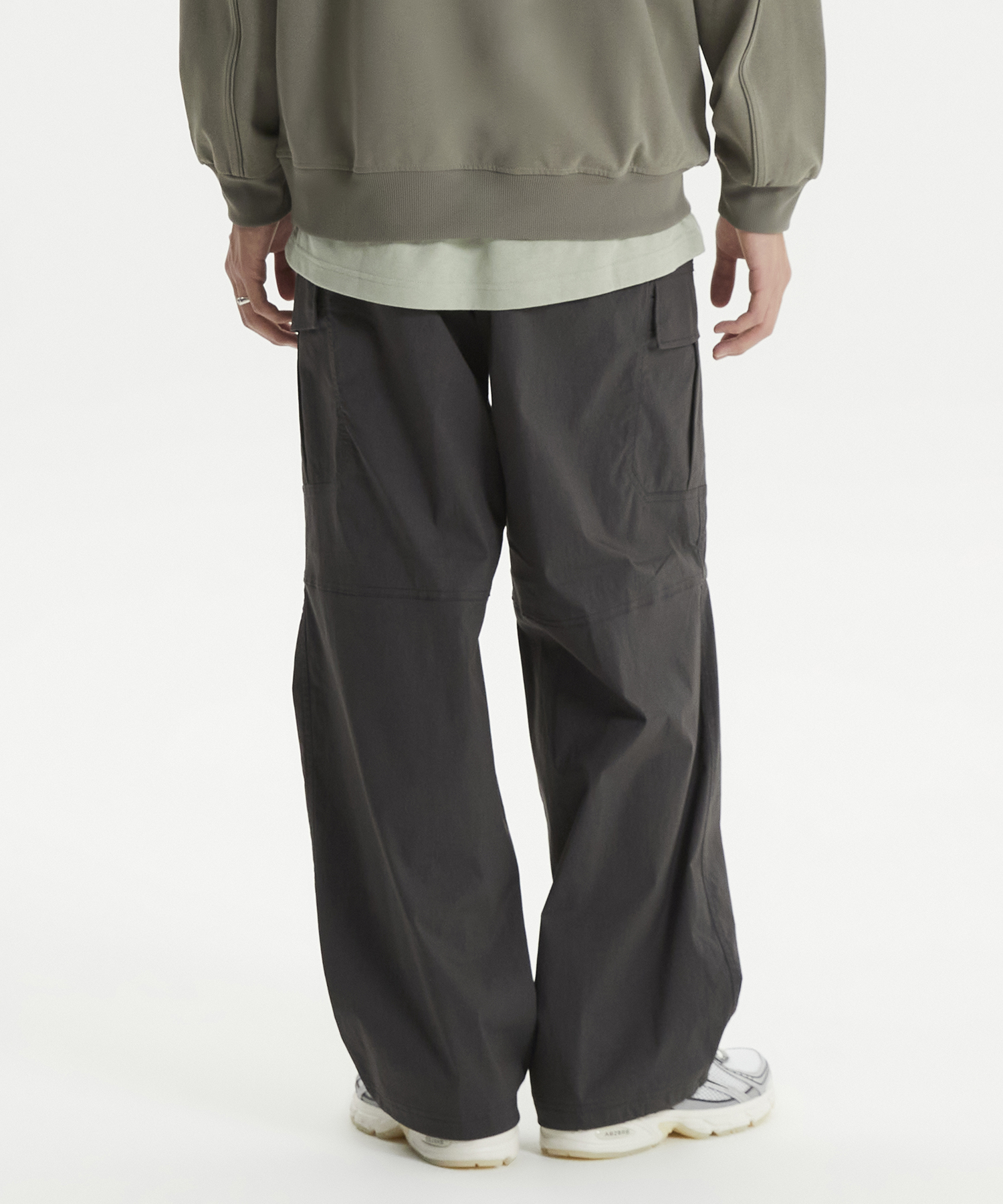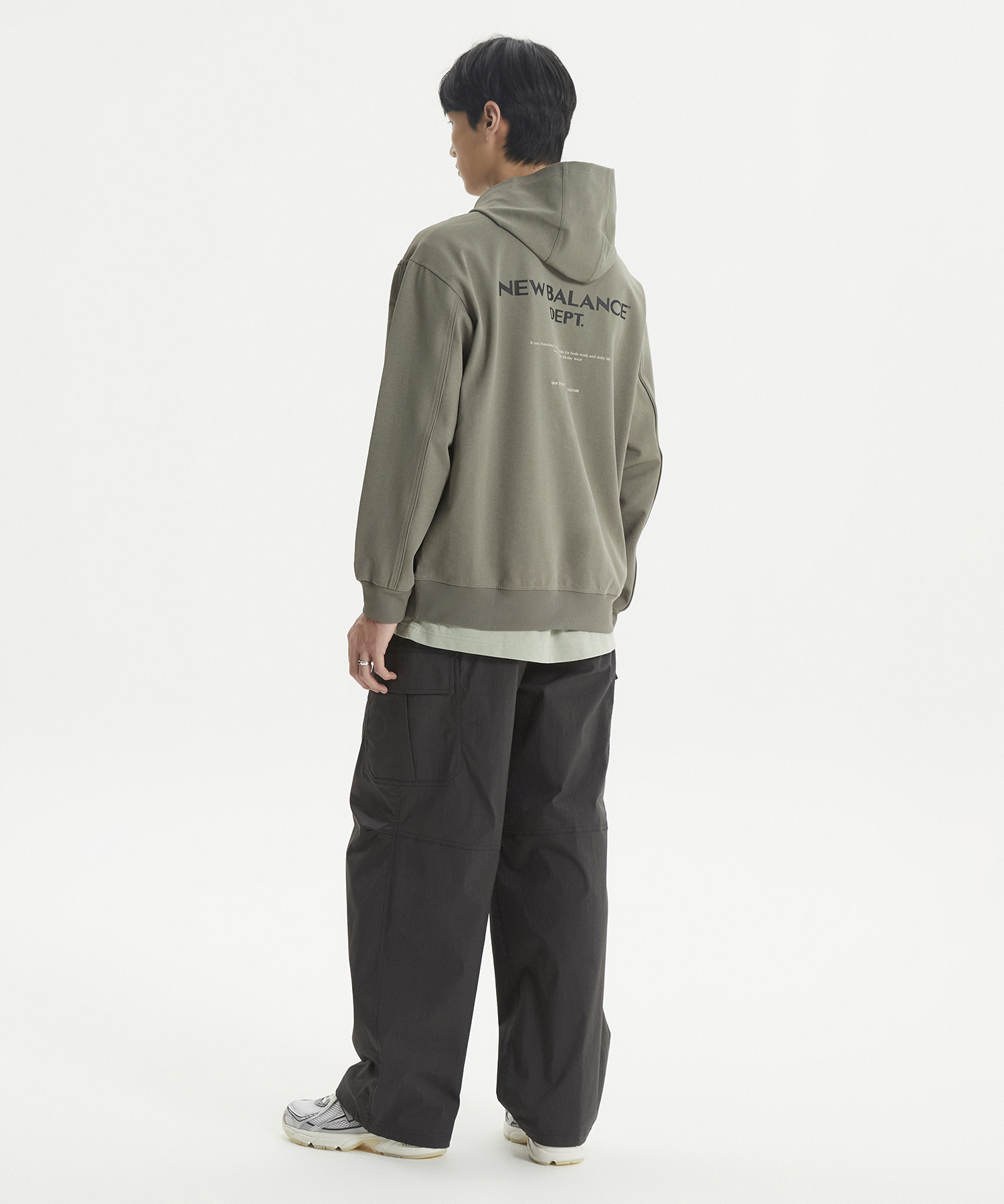 양쪽 사이드 카고 포켓 디테일과 백 포켓 상단 뉴발란스 레터링 포인트 라벨 사용하였습니다