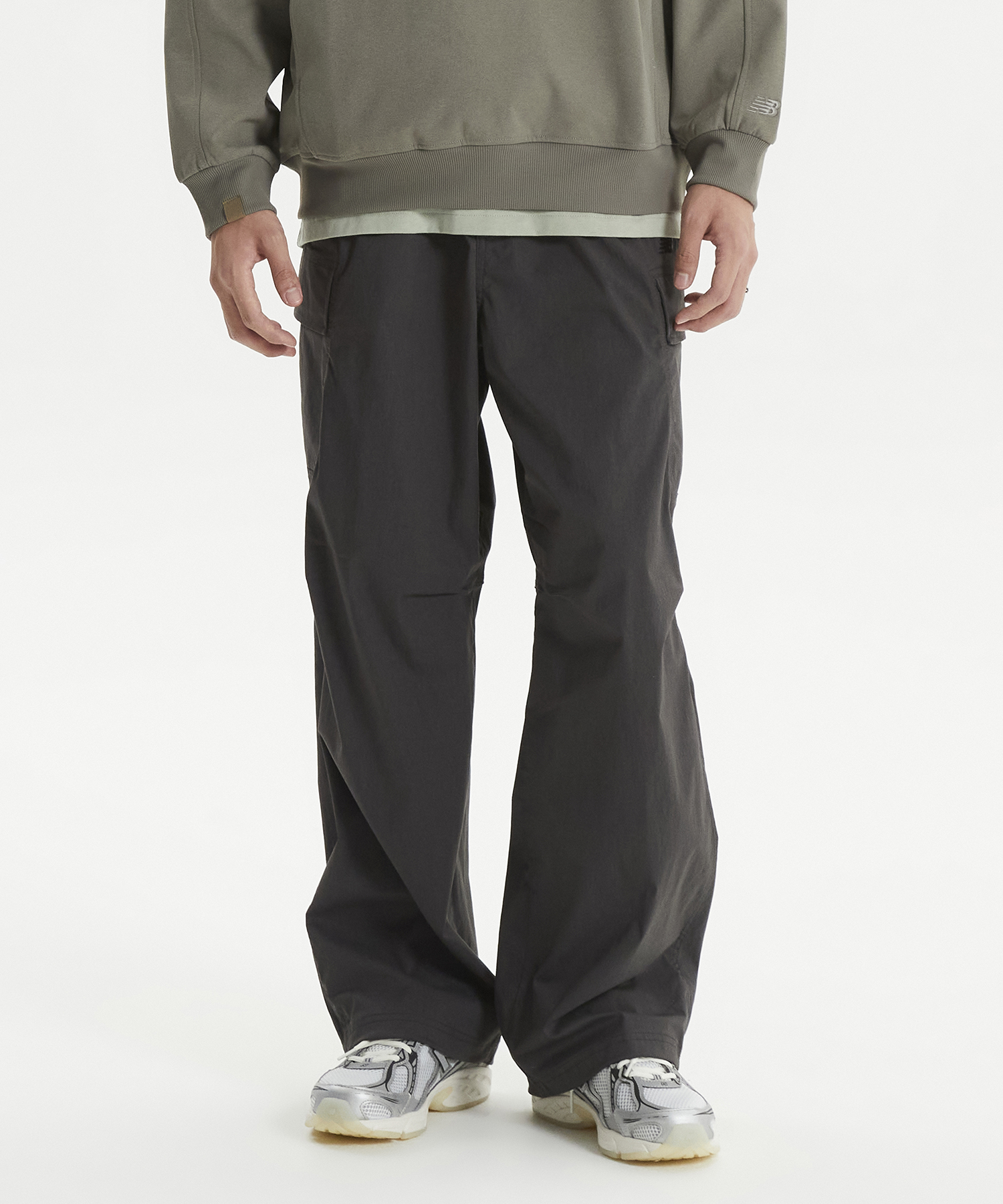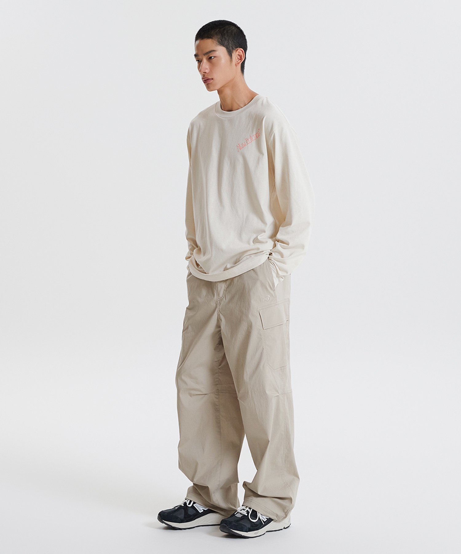 캐주얼한 무드의 뉴발란스 에센셜 카고 와이드 팬츠입니다