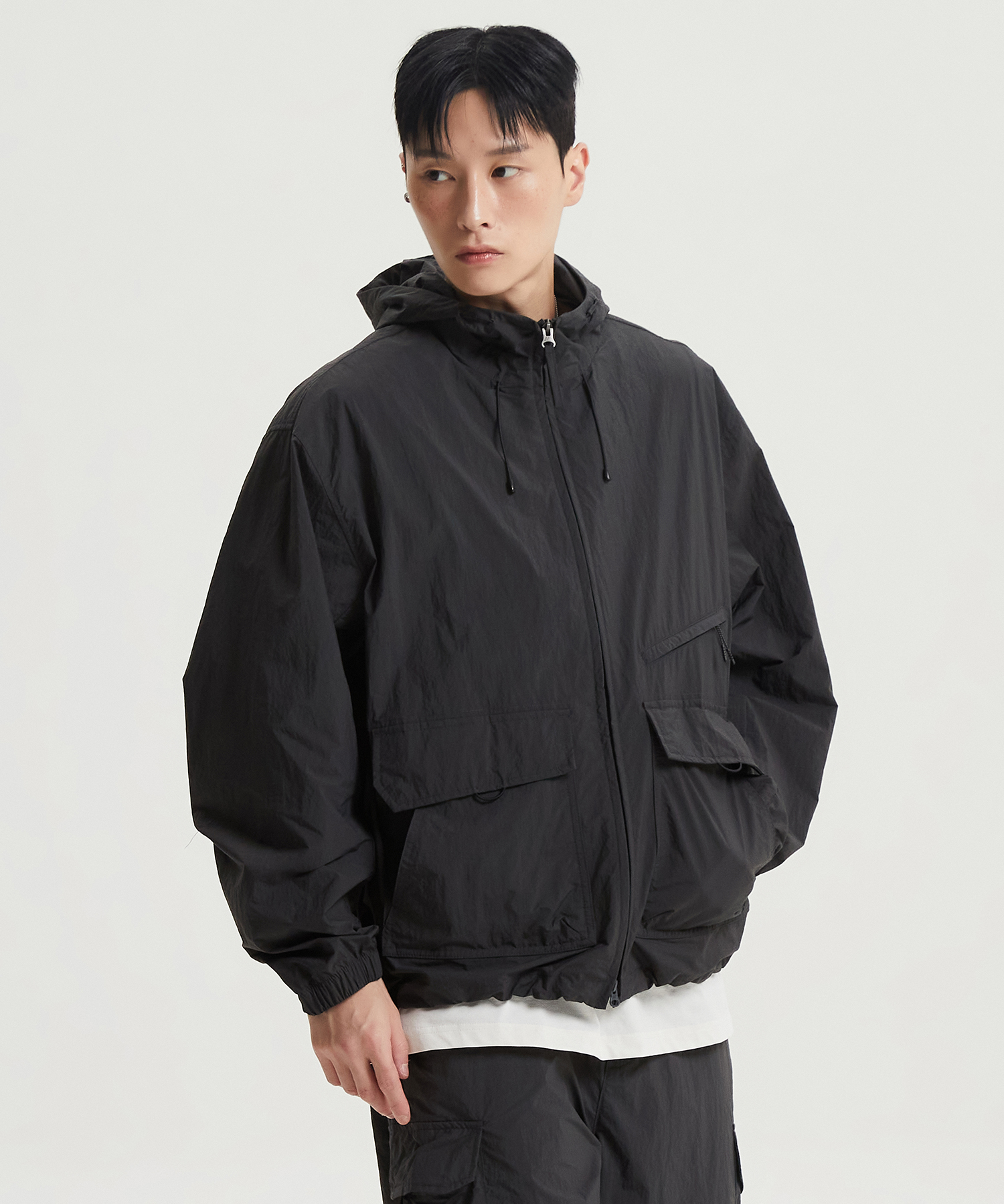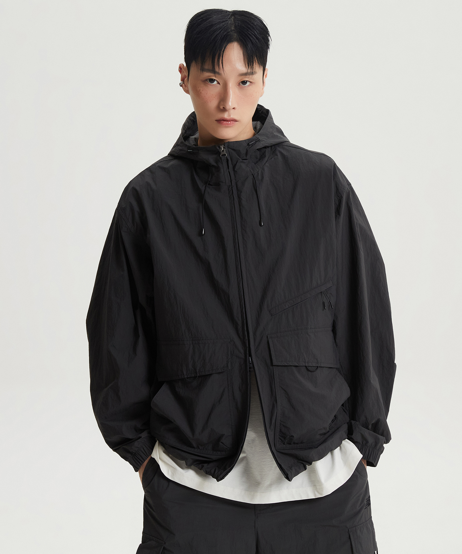 다양한 포켓 디테일로 트렌디한 디자인의 경량 코튼라이크 후드 자켓입니다
