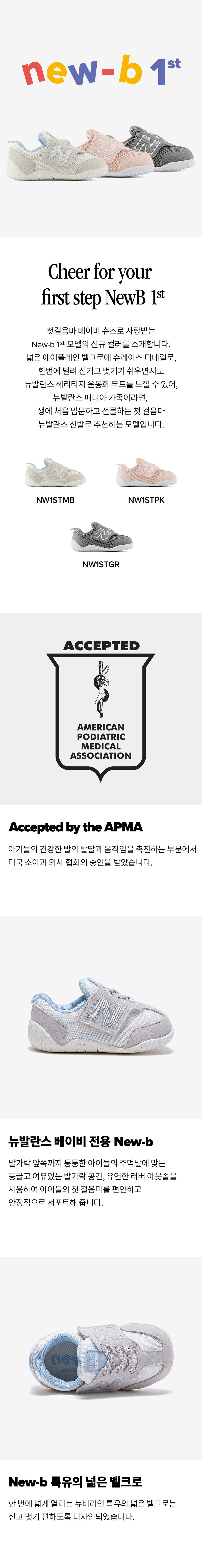 첫 출시 후, 베이비 슈즈로 많은 사랑을 받고 있는 뉴비 모델의 버전업 모델인 뉴비1st 입니다.