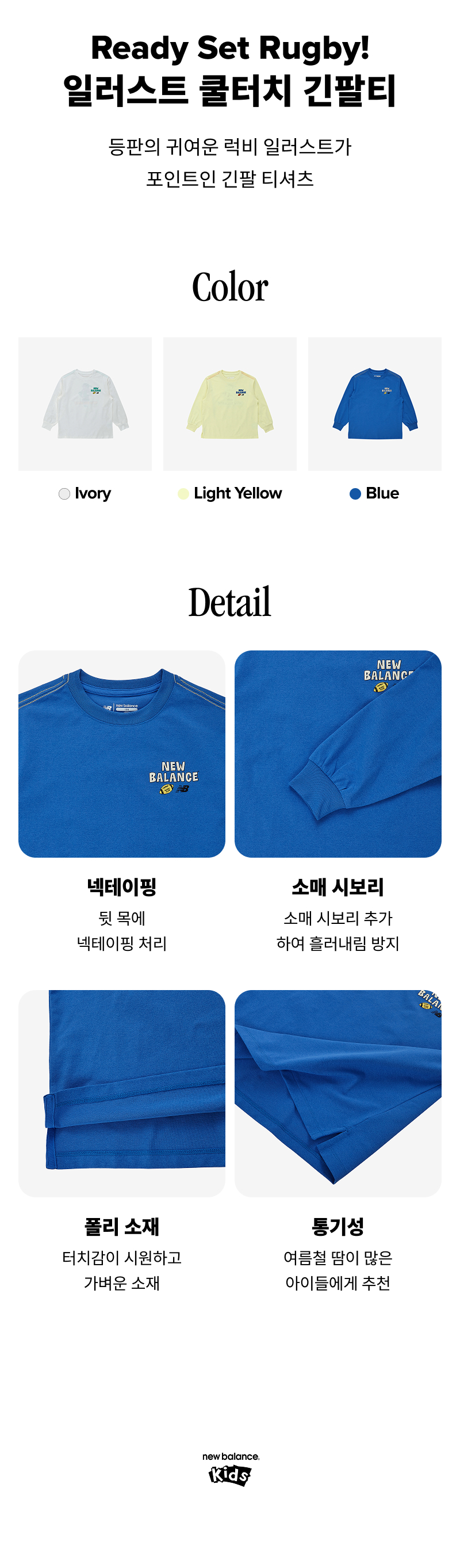 얇은 중량의 폴리 소재를 사용하여 터치감이 시원하고 가벼우며 통기성이 좋아 여름철 땀이 많은 아이들, 에어컨 바람이 피하고싶은 아이들에게 추천합니다.