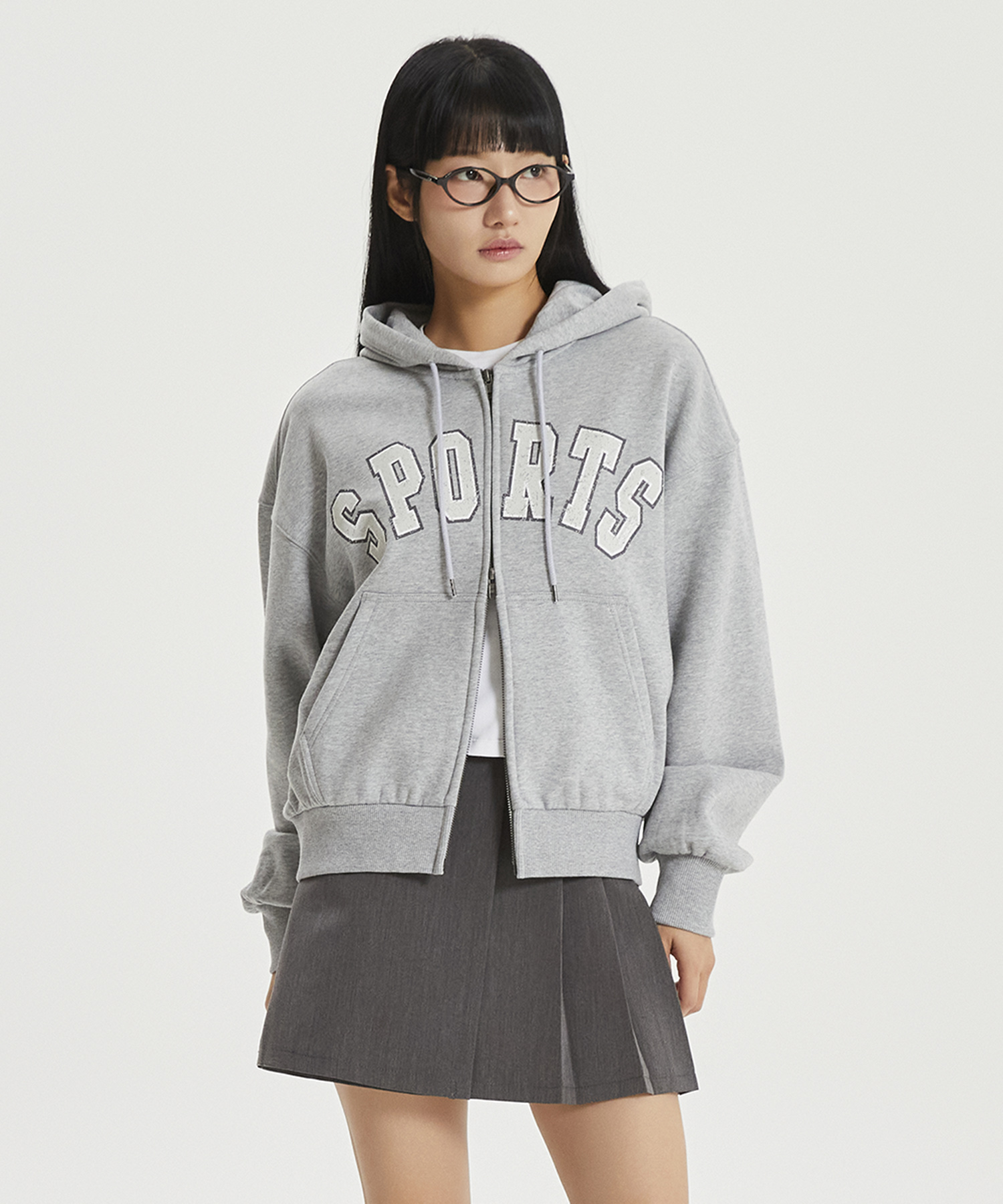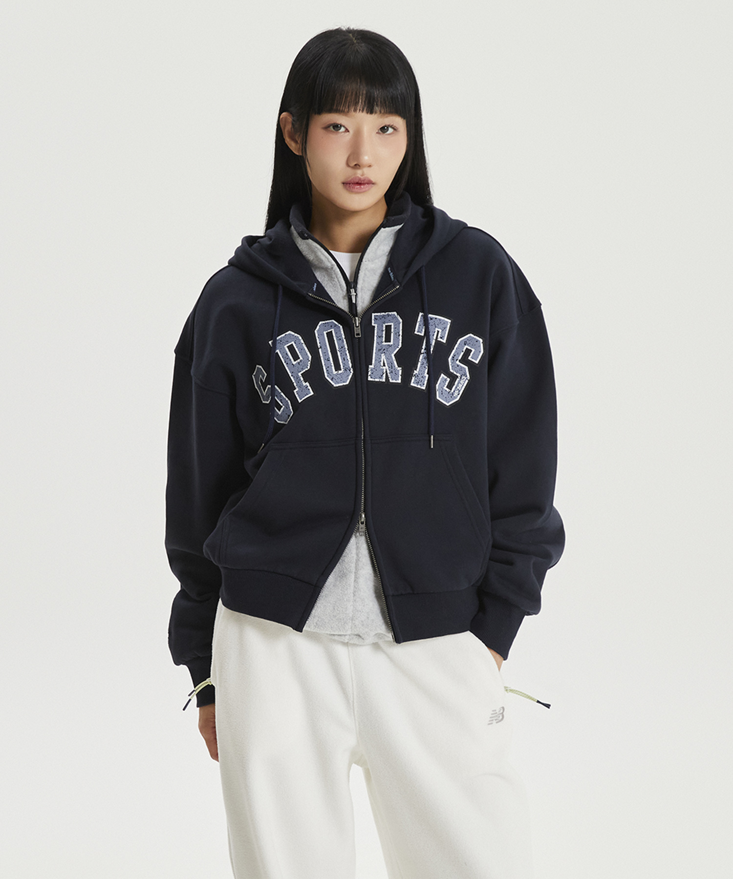 캐주얼한 빅 레터 그래픽이 돋보이는 오버핏 후드집업입니다