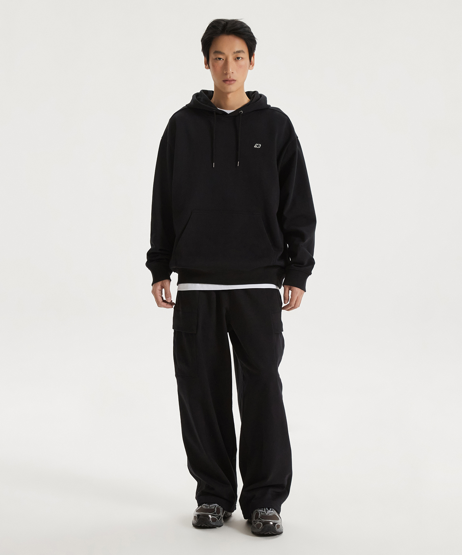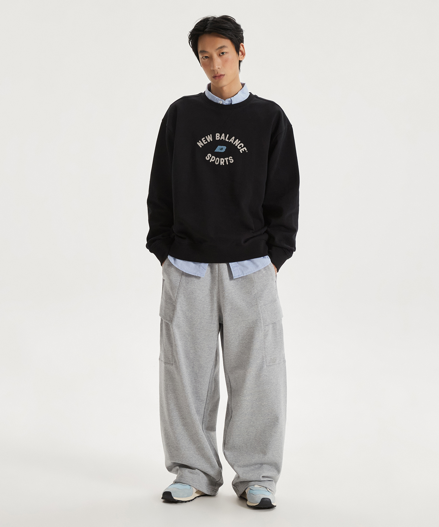 후면 오른쪽 포켓 위 뉴발란스 레터링 포인트 라벨로 차별화했습니다