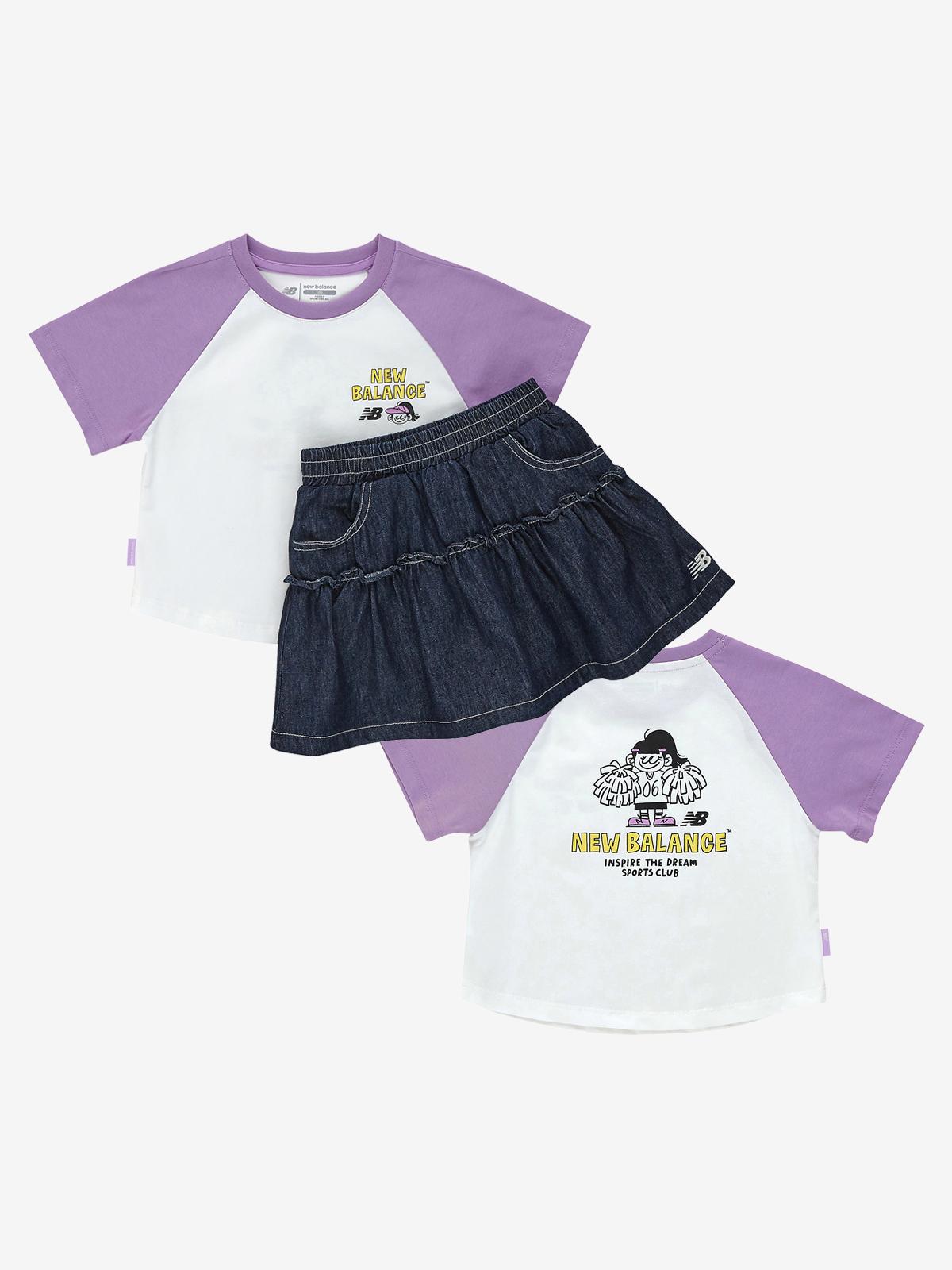 Ready Set Rugby!_ 라글란 반팔티 + 데님 캉캉 스커트 셋업